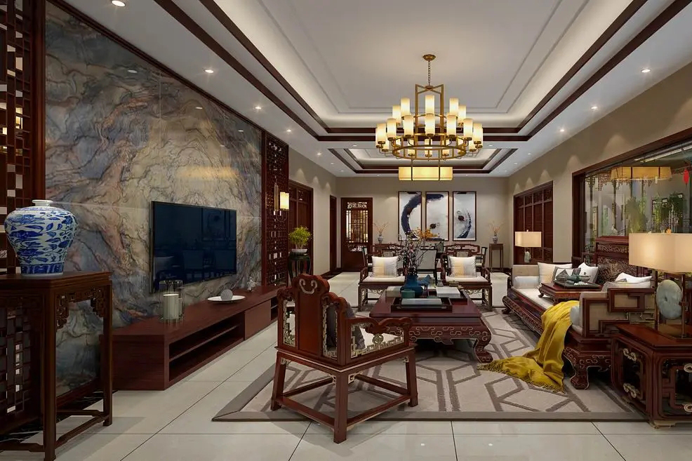 中式豪宅所营造的家居风貌,呈现出别样的情调。沉稳的中式气息,优雅灵动的家居,古色古香的韵味,让人深刻感受到文化底蕴。中式山水意境和传统建筑之美,通过现代工艺和设计手法融入山水之中,艺术地呈现出流传千年的诗情画意。中式装修在保留古色古香的文化韵味的同时,更贴近现代人的生活需要,更符合现代人的审美,因此也被越来越多的人所接受,逐渐成为一种比较流行的装修风格。