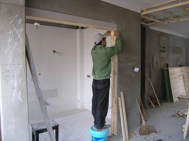 22、木工的包门套和瓦工的贴瓷砖一定要配合好,包门套的时候要考虑下面的地面是否还要瓷砖或者是水泥砂浆找平,因为门套如果在贴瓷砖或者地面找平之前订好的话,一直包到地面,将来我们瓦工施工的时候,如果导致水泥和门套沾上的话,导致我们的门套吸水发霉的现象。
