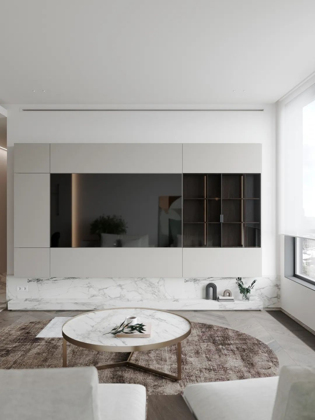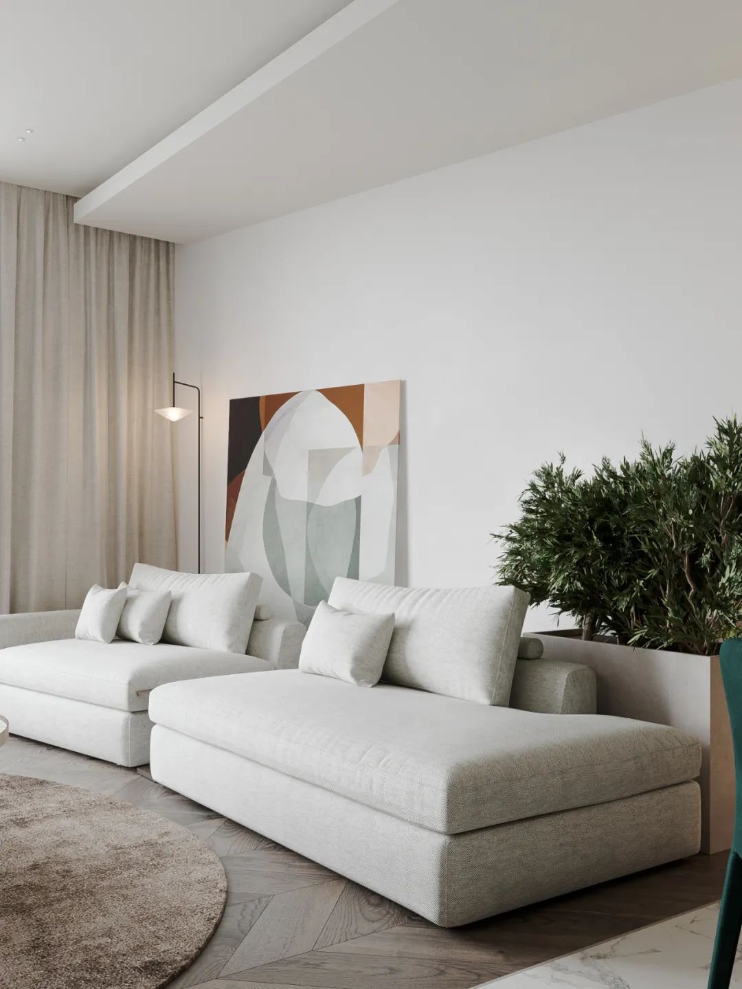 极简是现代空间设计的一大趋势,简约而不简单是设计要领,空间整体给人干净素雅的感觉,极简的设计加上良好的采光使得这个空间看上去很大气。设计主要采用白色调,光亮感很强,储物空间也很充足,设计师还注重各种材质体现出来的肌理,从而使得这个空间很有质感,空间中还加入装饰挂画来提高艺术品味,整个空间的光亮感十足。