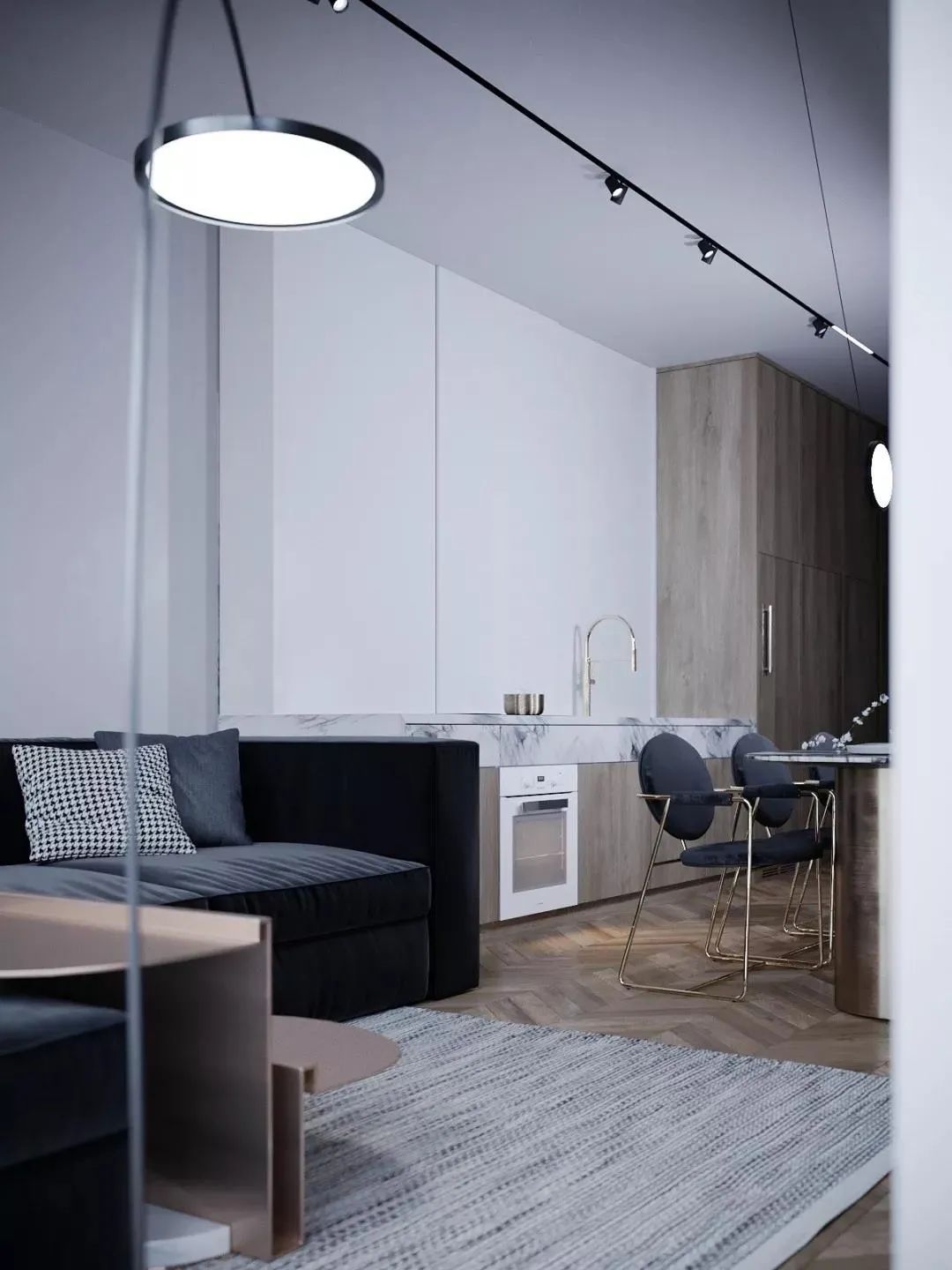 ,面积为60㎡。设计师在设计时使用了精致的家具与干净的线条,选用天然材质搭配金属,打造出精致现代风小宅。在满足舒适的日常生活的同时,也展现了空间的艺术美学。