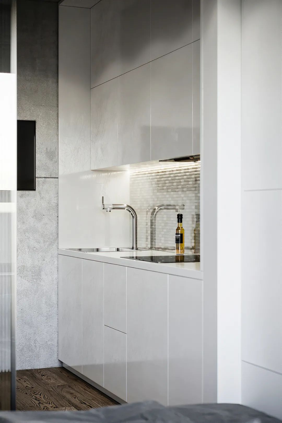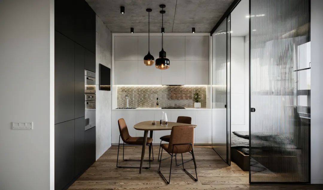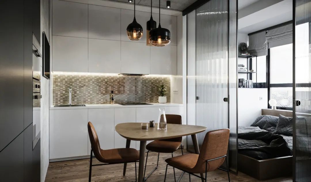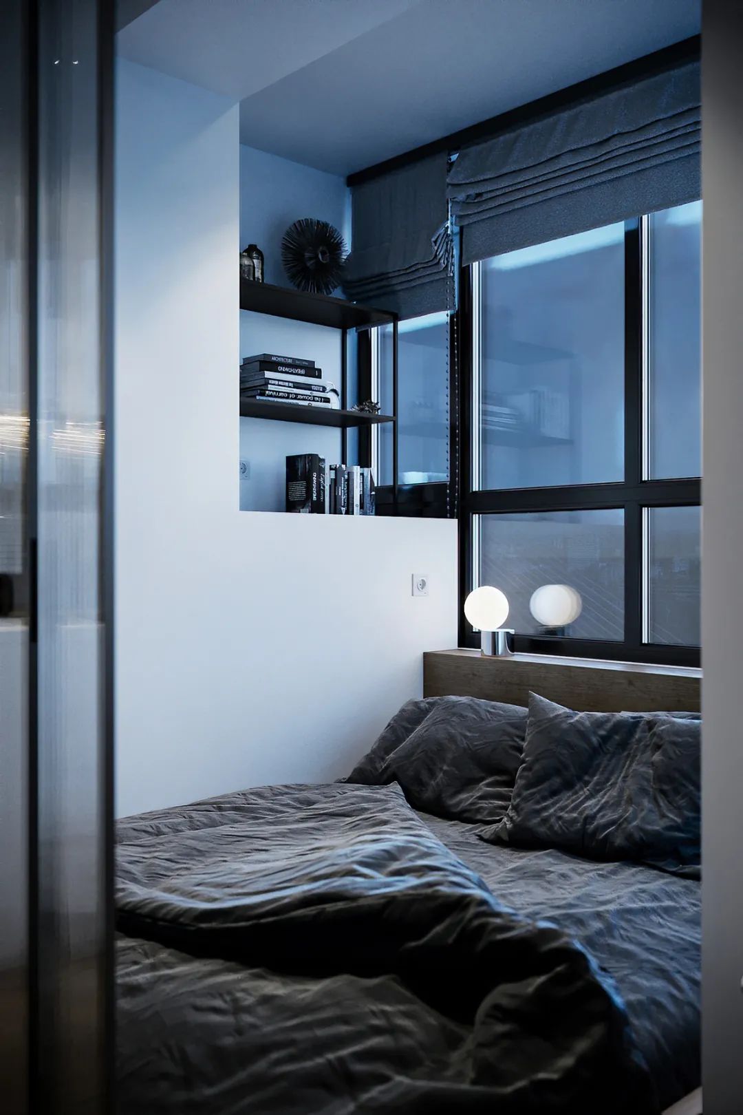 卧室被安排在了厨房和休闲区的间隙,由于空间有限,设计师利用玻璃进行隔断,既保证了光线的充足,同时也确保了私密性。