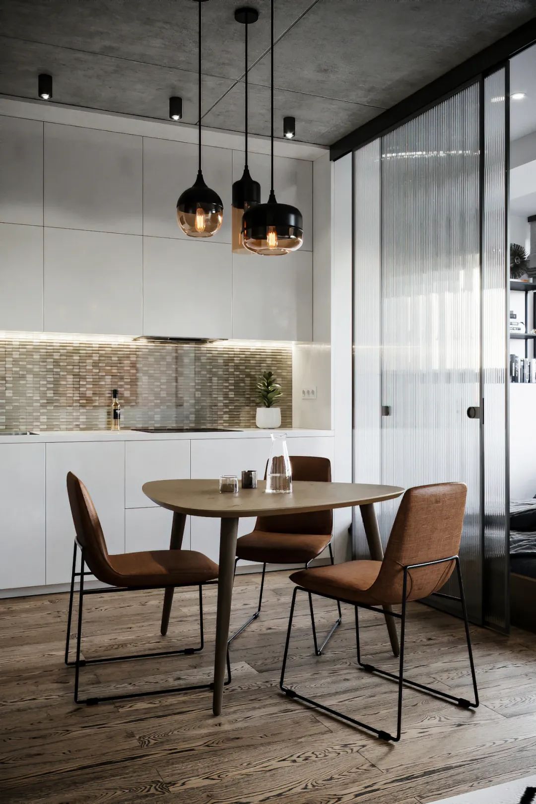 虽然整体的住宅面积不大,但设计师却将客厅、厨房、卧室以及休闲区域划分详细,使其整个住宅空间看起来有条不紊又充满生活气息。