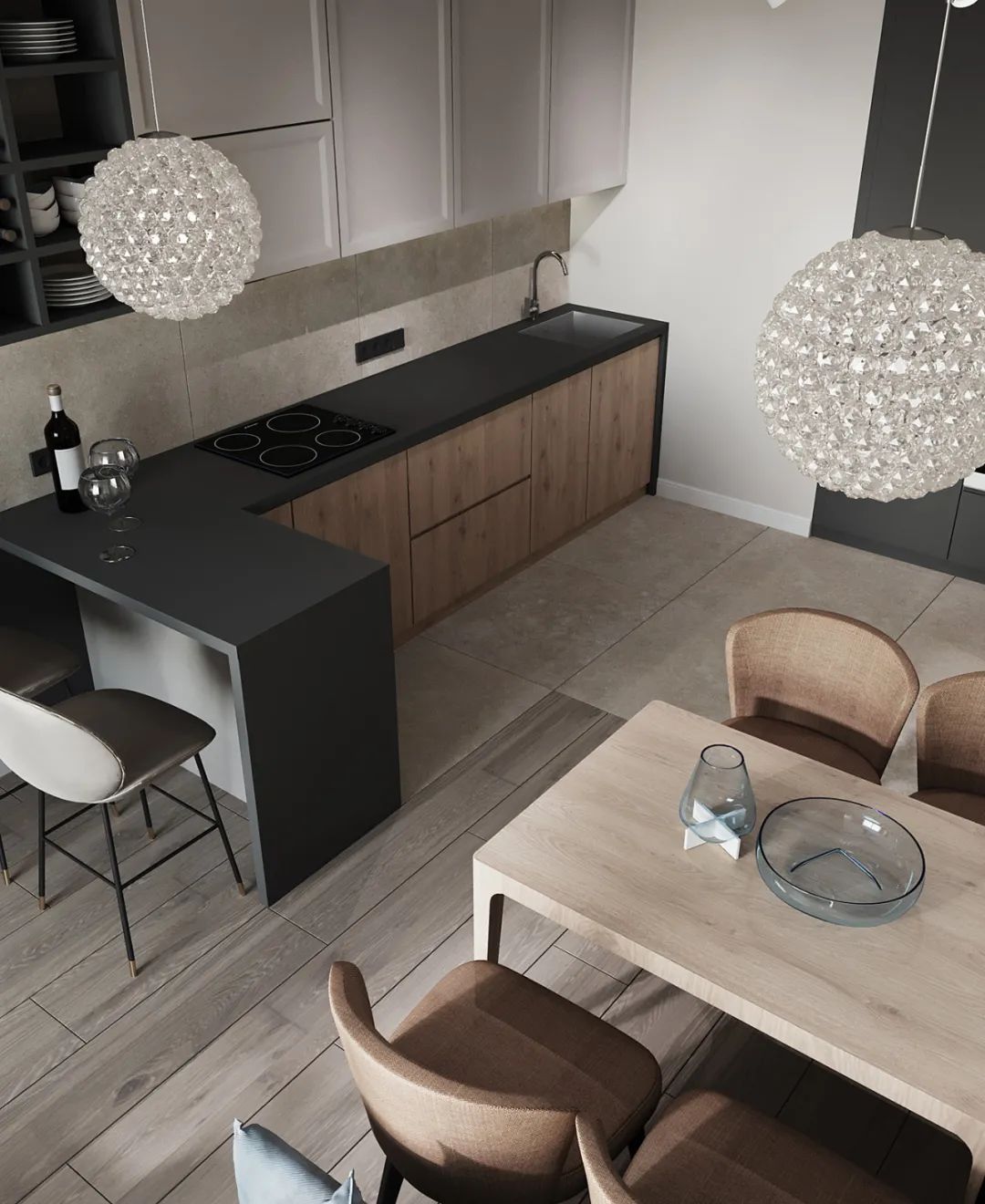 整个公寓的内饰部分,灯具采用了意大利的Azzardo、乌克兰的Anzazo、比利时的Lucide,更能增添一份时尚感。