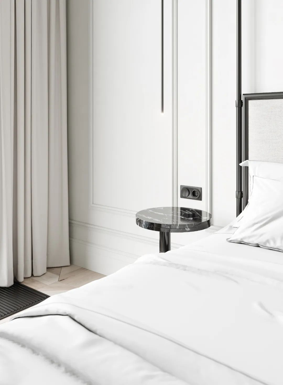 设计师主张极简空间设计,在作品中,你能看到更简洁的元素被用的淋漓尽致。空间体块、光线氛围以及白色,是在该设计中更突出的独特元素。